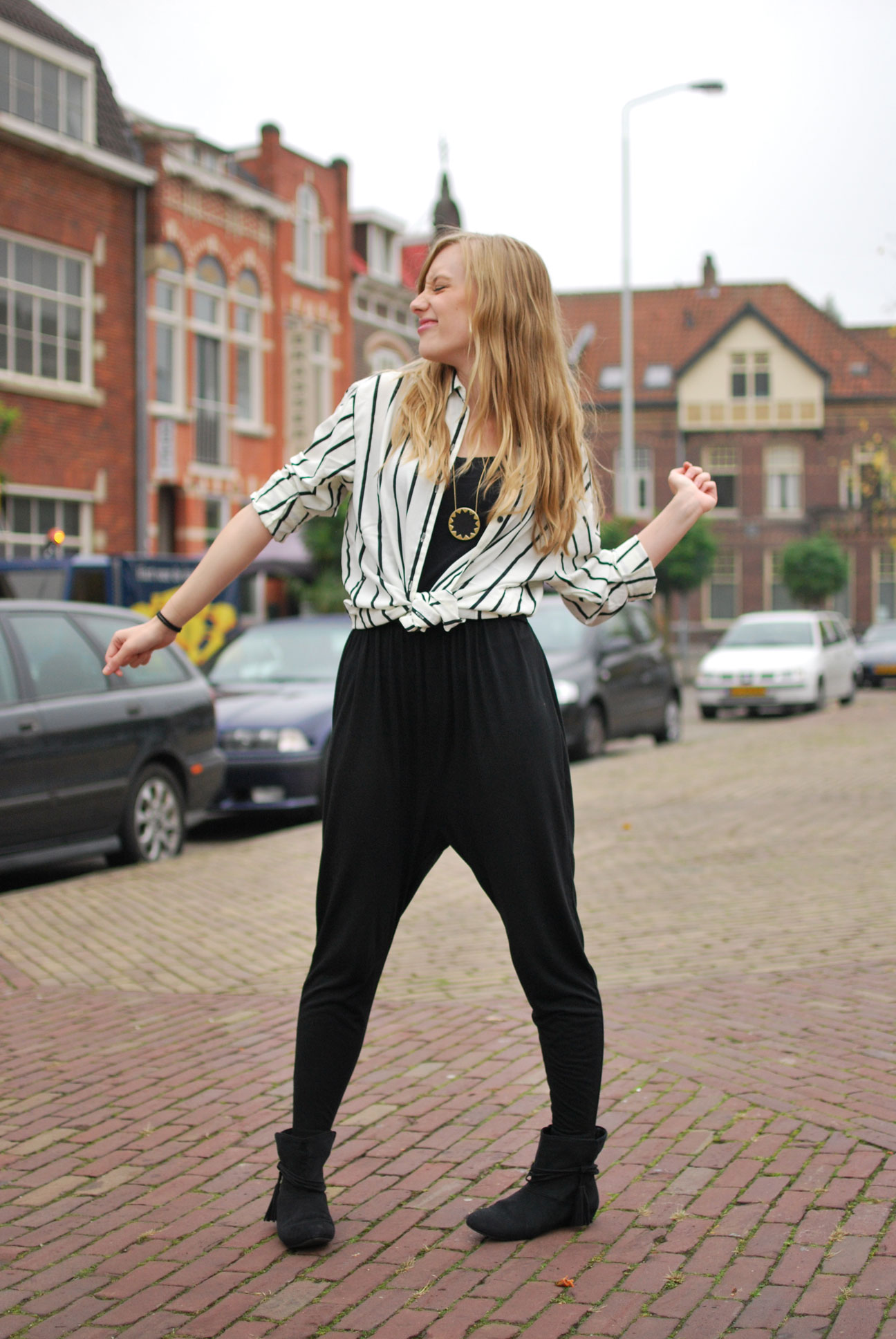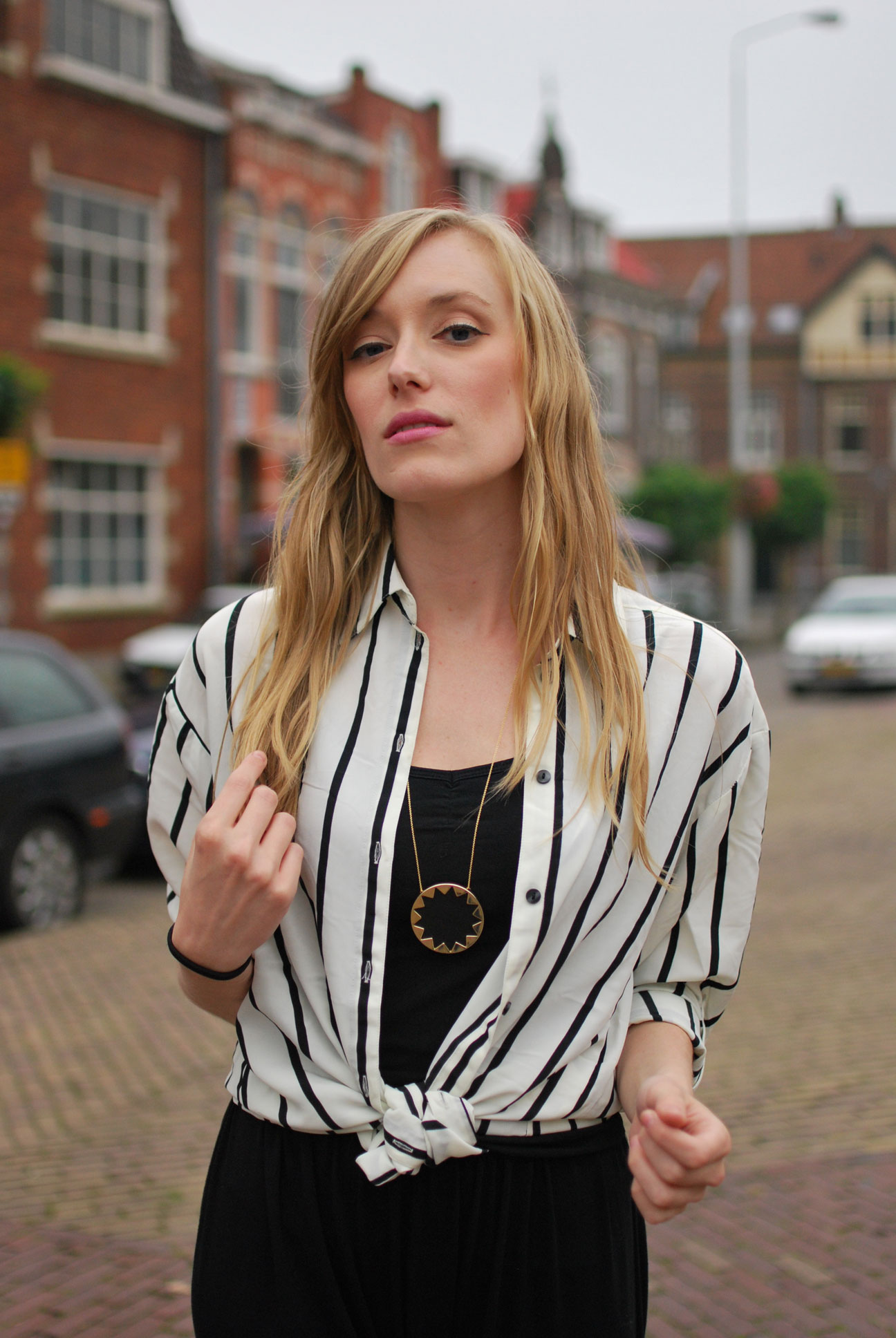 We spent another day in Eindhoven with my Aunt and Uncle and Cousins. It was amazing because it was market day. Eindhoven itself is a very special city. The rise of lighting and electronics giant Philips happened here. Philips was founded as a light bulb manufacturing company in Eindhoven in 1891. There are references to light bulbs and the history of the company all over the city. My cousin Joost was giving me all the details on the history as we were strolling around. Smart cousin 😉 We did some shopping and wandering and Joost took some outfit shots for me on a older street with some of the best architecture in the city and right around the corner from his apartment. I wore my trusty booties again and this great striped blouse I picked up at H&M before my trip. I find myself wearing more black and white right now and loving how classic it looks! Scroll down to hear more about my day.