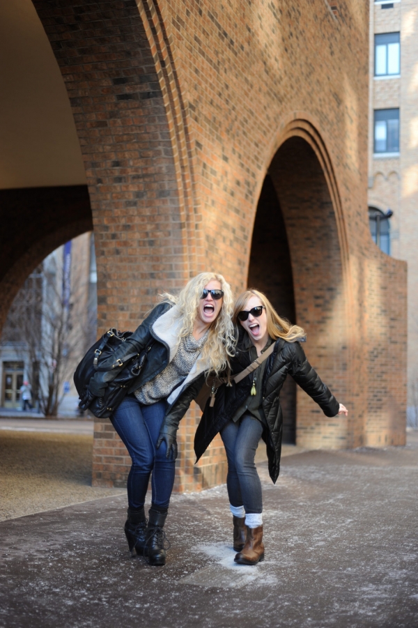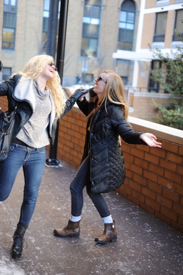 Santina - I just said this over on Blonde Bedhead, but I’ll say it again: I feel like I can hear the laughter when looking at these pictures! You two look like your having soooo much fun! I love your mixed neutral look, especially the boots!