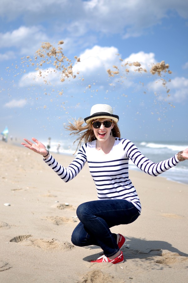 I am pulling these photos out of the archive. I believe they are from Spring time! The reason I say this is also because in this 100 degree heat you would never catch me dead in jeans and a long tee. Glad I found these though! I am actually headed to the beach this weekend for some play time in the sand and this first photo basically sums up my excitement every time I am there. I always pack stripes when I hit the beach. Simple, classic, done! Hope everyone has an amazing weekend.