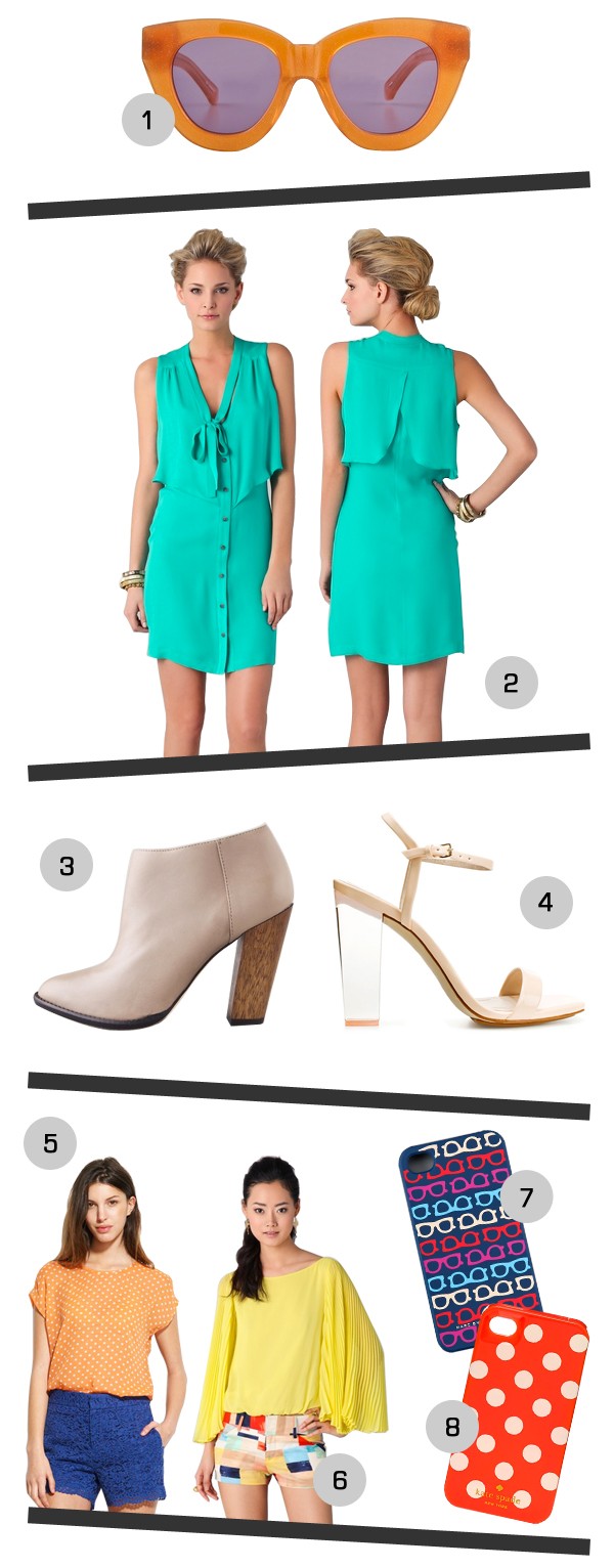 1. Karen Walker Anytime Shades (also love these) / 2. Rebecca Minkoff Dress