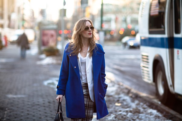 [coat: trina turk / blazer: forever21 / shirt: old navy / pants: topshop / shades: rayban /