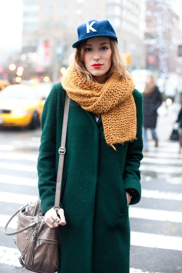 I have always been a hat girl and once I saw this K hat on tumblr I spent some serious time pouring through the internet to find its creator. I finally found Beth’s photos which let me to Kyle and the hat was mine. And that is the story of the K hat. I wore this look one rainy day during Fashion Week. Casual with a pop of color.