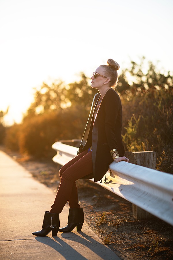 I have always been a big fan of Clover Canyon. As an obsessed graphic prints girl, they can do no wrong. These photos are from a warmer day when I could walk out in this light weight coat. Love how the tiny leather detail makes this blazer coat a serious statement piece. I am currently either up in the air or landing in NYC for the wedding of my dear friend Helena. I wish her + Keith all the best on their special day and can’t wait to celebrate with them. Then it’s off to eat Turkey with my fam and I can no tell you how pumped I am to be spending the holidays on the East Coast. To everyone traveling today, be safe and enjoy your journeys!
