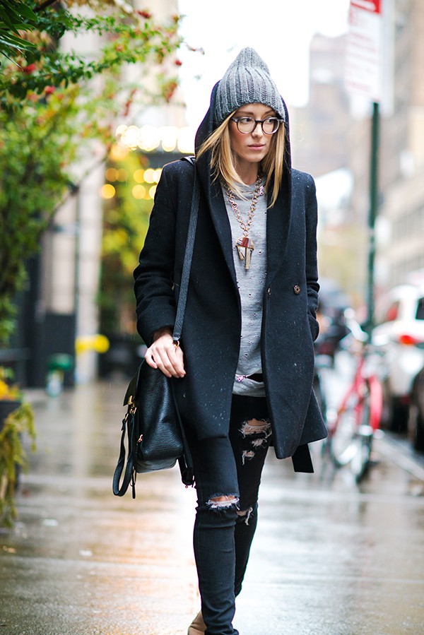 [hat: (similar) / jeans: ag / jacket: trina turk / bag: 3.1 phillip lim via forward / glasses: warby parker