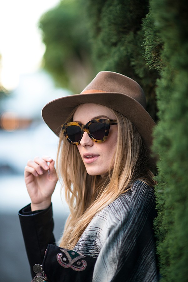 There is nothing I love more than an oversized coat and mixing different textures together. Love the leather details on these sleeves paired with this eclectic clutch. Let’s talk about the beading details on this clutch. Adds a little bit of jingle to my walk!