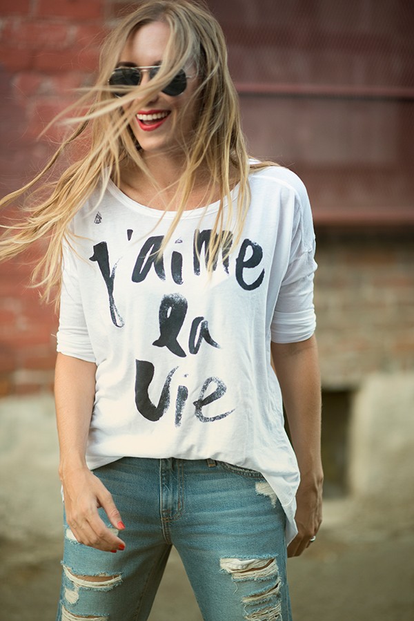 Today I am excited to partner up with California based clothing line SUNDRY and Piperlime. If you don’t already know, SUNDRY is known for their soft buttery tees and I am a sucker for anything graphic. I am sharing my fav way to style a tee: ripped denim and a pump. Not just your normal jeans and tee look.