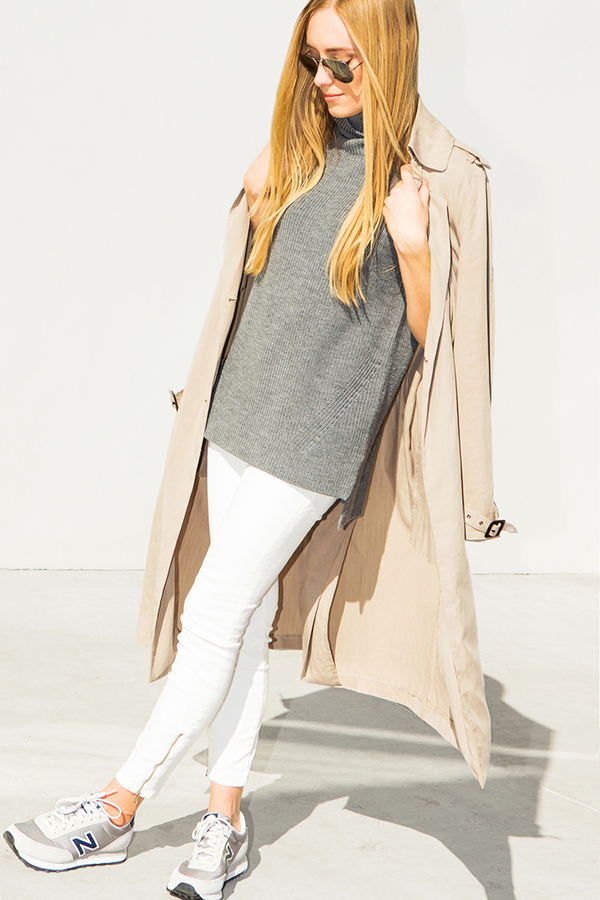 Only in a LA can you get away with a sleeveless turtle neck and light trench in Winter. Love you Cali!! I also tend to wear sneakers and flats alot when running around. I am not one of those girls that can drive in heels. Bless your little hearts if you can. I am jealous. Currently still here in a Christmas food coma. That means it’s a long hike with the puppy today for me, Blake and Lola. Hope everyone has had a wonderful holiday filled with Family and Friends. xo