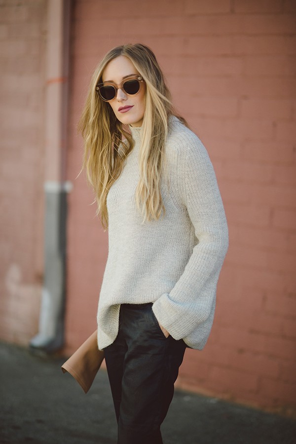 I has been SUPER hot in LA this past week but I am still holding on to those cozy looks. Keeping it super simple with this oversized chunky knit and some coated trousers. A great alternative to your everyday skinny jean and just as cozy.