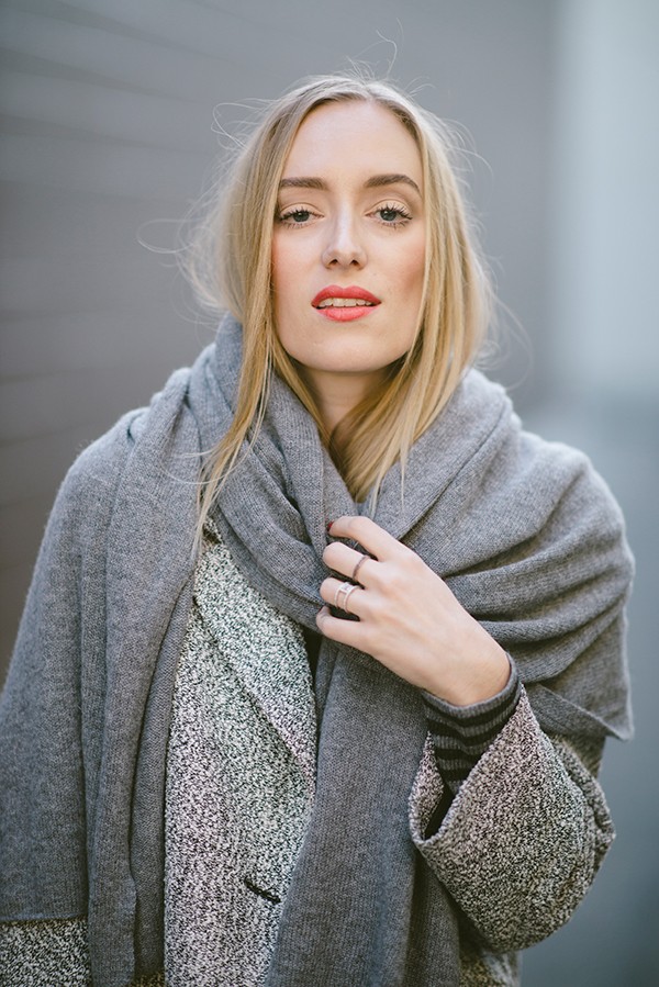 My latest go to accessory? An oversized cashmere scarf. Ok, and a red lip. Hahaha. Love easy tonal pieces for a pulled together look. These shades of gray are getting me through my week. I am still having a case of the Mondays on Tuesday. So if you need me, I will be downing lots of coffee and getting inspired.