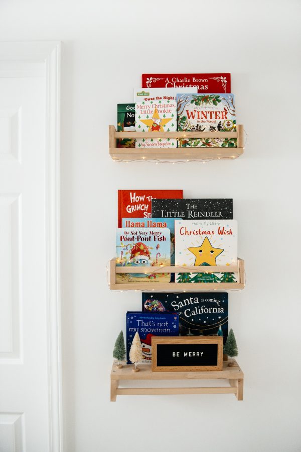 Last week I took a trip with Otis to Barnes & Noble to stock up on some Christmas and holiday books. We only had a few from last year so I thought it would be a fun adventure to head to the store instead of pick out a bunch online. It’s been months since I have been to the book store and there is just something special about holding them in your hand, flipping through the pages and falling in love with them one by one. I brought Otis in the stroller so I could initially make my edit without chasing him through the store. HA! We went on a Monday morning right when the store opened so it was quiet, peaceful, and empty. Eventually I let Otis loose and he proceeded in pulling every book in his path off the book shelf and I chased him, putting every book back. What can I say, the kid loves books. I ordered these twinkly lights to turn on when we read our books at night and grabbed these little trees at the dollar section at Target. The simplest decor can really change the vibe of a room and this little twinkly of holidays has me feeling so excited for Christmas. Going to the bookstore before the holiday season is going to be added to our holiday bucket list for years to come. Whether you head to the book store, or the library, make sure to take a trip with your kids. Such a sweet memory to share together.