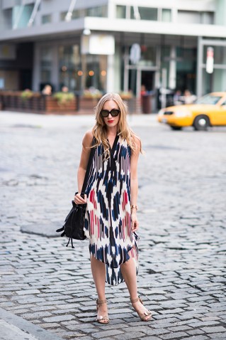 [dress: otte / shoes: schutz / bag: rachel zoe / shades: karen walker / lips: NARS heat wave] Nothing is easier than throwing on this silk dress and running out the door. Easy dressing with a big patterned statement. Hope…